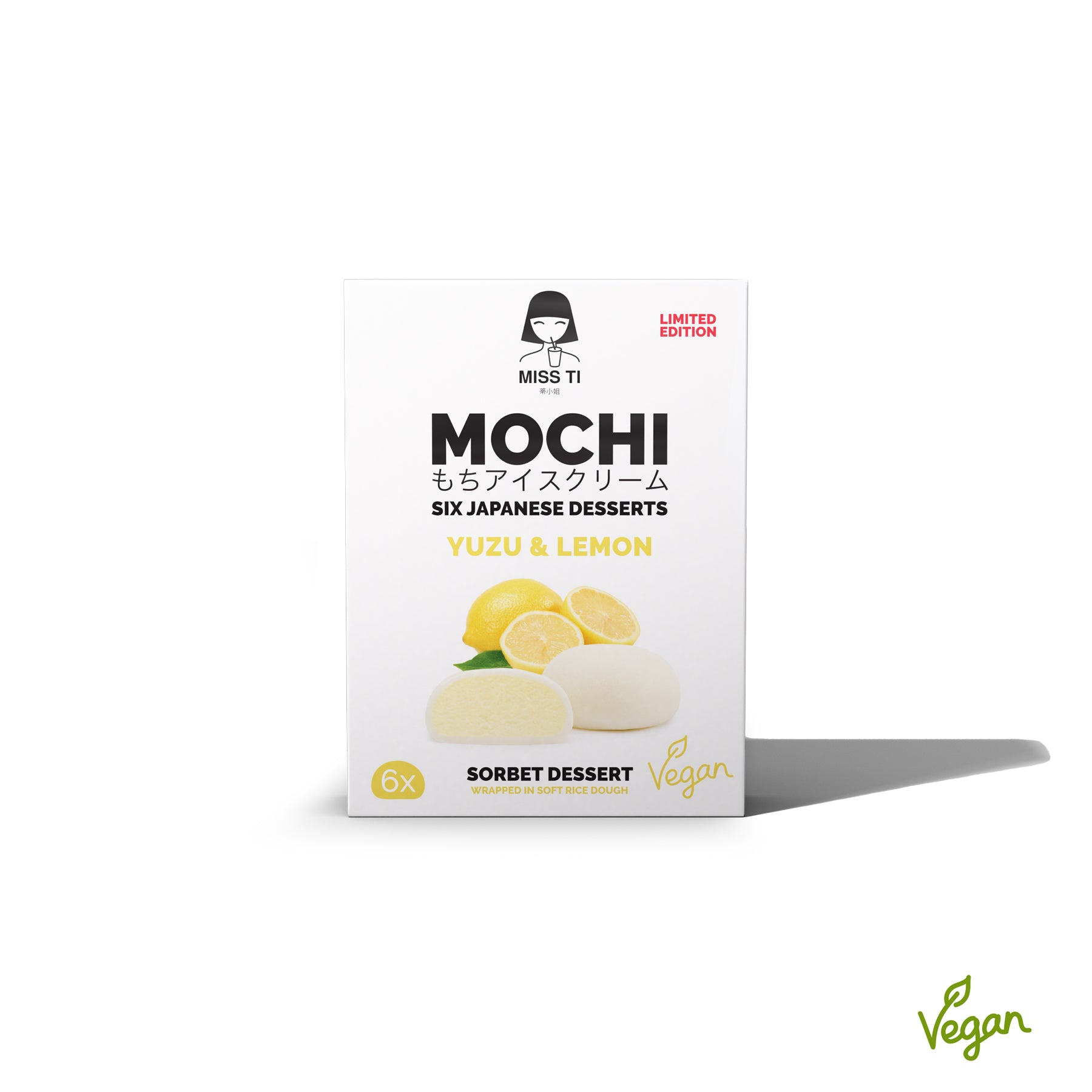 Yuzu and lemon sorbet in rice cake. Store below -18°C. Remove from freezer 5-10 minutes before consumption. Once defrosted, do not refreeze. Vegan product.